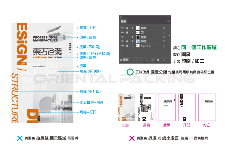分類圖層 區分標示 刀模 / 印刷 / 加工 / 其他需求備註