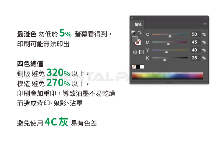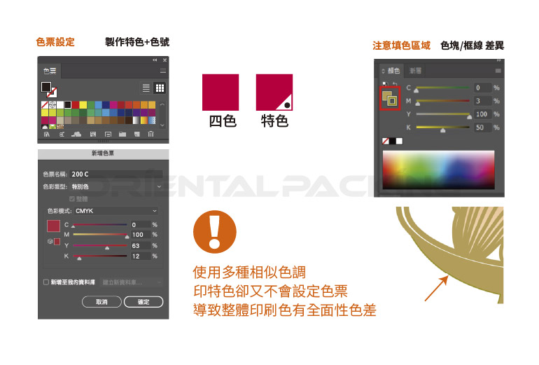 四色 / 特色 / 加工 皆可用色票(色版) 清楚標示 避免混淆